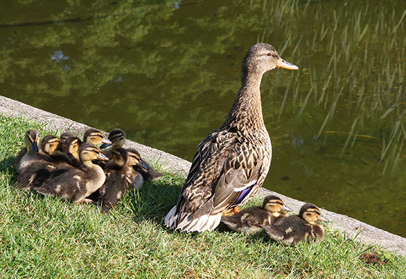 Stockentenweibchen mit Küken