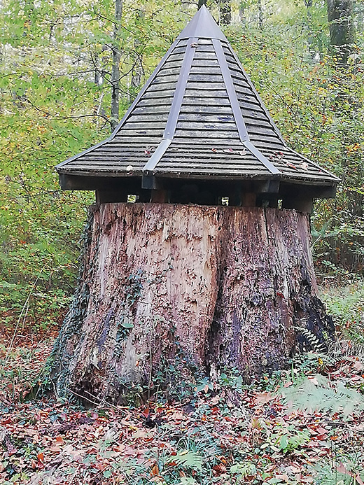 Die zweite Wanderung fand am 17.11.2016 statt. Was wir dann sahen, machte uns traurig. Die Überreste des gefallenen Baumes lagen zersägt am Boden. Ein unterer Teil des zersägten Baumes wurde aufgerichtet und mit einem Dach versehen.