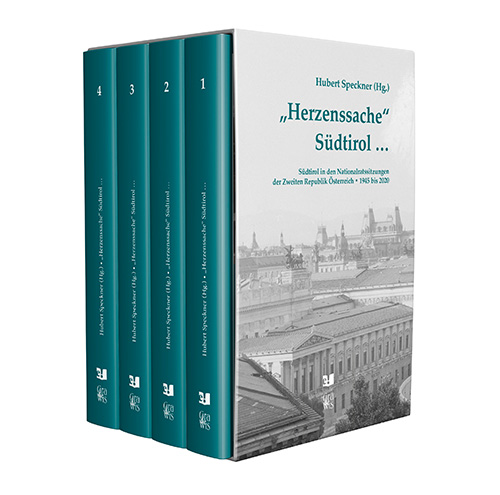 Bibliographische Angaben: Speckner, Hubert (Hrsg.), „Herzenssache“ Südtirol …. Südtirol in den Nationalratssitzungen der Zweiten Republik Österreich 1945 bis 2020, Verlag Gra&Wis, Wien / Effekt! Buch, Neumarkt a.d. Etsch/Südtirol 2022; Bd. 1: 1945 bis 1966; Bd, 2: 1966 bis 1979; Bd.3: 1979 bis 1996; Bd. 4: 1996 bis 2020; insg. 3120 Seiten; zus. 80 €