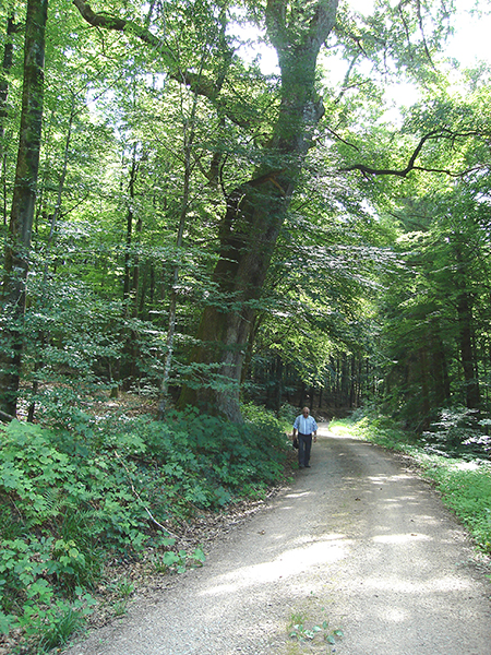Am 30.07.2009 wanderten wir von Nebenau (Ortsteil von Kandern) kommend in Richtung Scheidegg. Am Munzenbachweg sollten wir ein einmaliges Naturdenkmal, die Wodanseiche, kennenlernen. Damals stand der sehr alte und mächtige Baum noch aufrecht da, nur an 2 Stellen waren Äste abgebrochen. Schuld war der Orkan „Lothar“, der im Dezember 1999 bei uns wütete und auch an der Eiche rüttelte. Zum Glück habe ich in meinem Archiv eine Aufnahme von damals gefunden. Das Foto ist ein Zeitdokument.