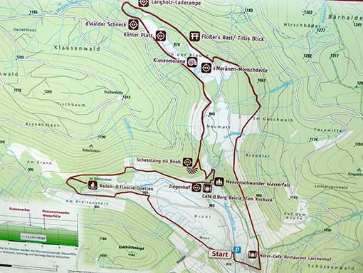 Am 05.10.2017 fuhren wir zu viert nach Menzenschwand, um den Geissenpfad zu begehen. Menzenschwand (550 Einwohner) ist ein heilklimatischer Kurort. Er gehört zur Stadt St. Blasien. Menzenschwand wurde von Mönchen aus dem Kloster St. Blasien besiedelt (1. urkundliche Erwähnung 1328). Daraus hat sich ein Dorf entwickelt. Der Ort besteht aus dem Vorder-, Mittel- und Hinterdorf.