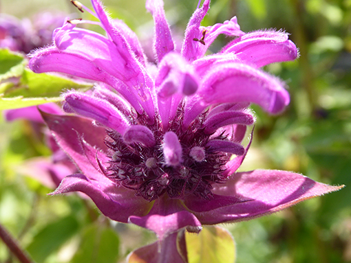 Marlene Müller hat in ihrem Kräutergarten auch die Indianernessel (Goldmelisse, Monarda). Die farbenprächtige feurig-rot blühende etwa 1 m grosse Staude ist ein Blickfang. Die aus Nordamerika stammende Pflanze nutzten die Oswego-Indianer als Heilmittel bei Erkältungskrankheiten aller Art. Heute ist der erfrischende Tee aus den Blättern in den USA sehr beliebt.