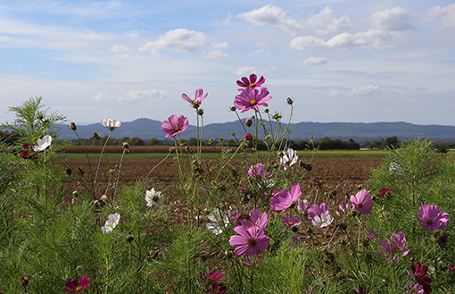 Während einer Fahrradtour in der Nähe von Heuweiler stieß ich auf ein Blumenfeld mit Kosmeen. Kosmeen zählen zu den Korbblütlern. Sie lieben sonniges Klima und mögen außerdem lockeren, durchlässigen Boden, der weder zu trocken noch zu feucht ist.