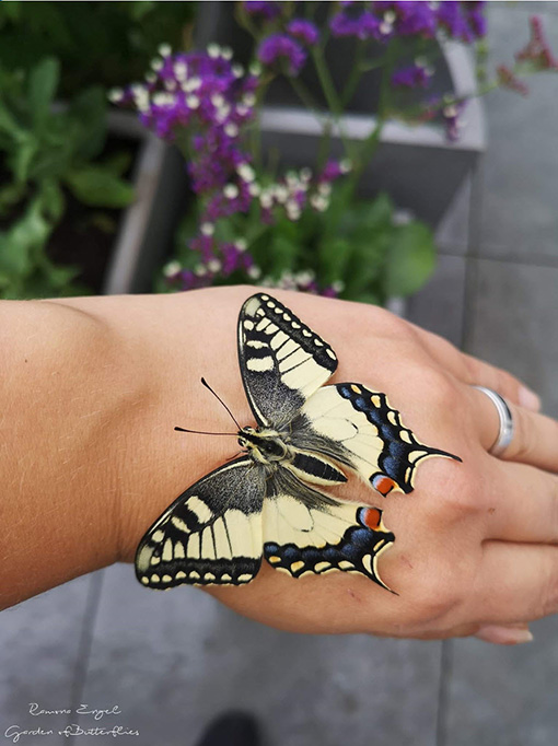 Ramona Engel: Seit meiner Kindheit faszinieren mich die wunderschönen farbenfrohen Falter. Also habe ich im Sommer 2018 beschlossen, ihre Population mit der geschützten Aufzucht in Netzbehältern (Aerarium) von Ei oder Raupe ab aufzuziehen.