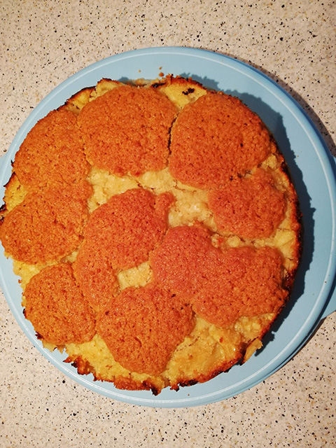 Den Kuchen musste ich schon zum 2. Mal backen, da er Familienmitgliedern und auch einer Nachbarin, die ab und zu ein Stück bekommt, gut schmeckte. Persönlich finde ich den Kuchen auch gut, aber mein Favorit ist der Apfel-Wein-Kuchen.