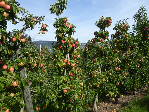 Im Herbst ist die Zeit der Apfelernte. So beobachteten wir anlässlich unseres Bodensee-Wanderurlaubs und bei einer Wanderung am 11.10.2019 im Markgräflerland die fleissigen Helfer bei der Ernte. Leider ist es so, dass viel Fallobst unter den Bäumen liegt. Auf unserer erwähnten Wanderung konnten wir einige intakte Äpfel verkosten. Die schmeckten unglaublich saftig.