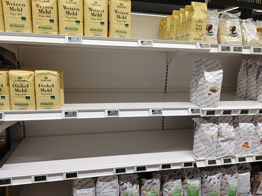 Beim Einkaufen in Drogerien und Supermärkten erblickte man viele leere Regale. Man konnte meinen, es würde ein Krieg ins Land ziehen. Es fehlten vor allem Hygieneartikel, Desinfektionsmittel, Klopapier und Taschentücher. Aber nicht nur das. Auch bestimmte Mehlsorten, Nudeln, Hülsenfrüchte, Tomatenmark, H-Milch und Käse. Die Hamsterkäufe begannen bei uns vor eineinhalb Wochen als bekannt wurde, dass es einen Infizierten im Landkreis Lörrach gab. Inzwischen stieg die Infektionsrate auch in der Schweiz und Deutschland an. Wie mir ein Wanderfreund erzählte, beteiligten sich im Grenzgebiet in Lörrach und Weil am Rhein auch viele Schweizer an Hamsterkäufen.