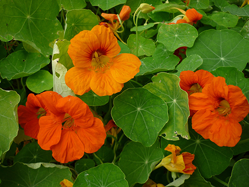 Inhaltsstoffe der Kapuzinerkresse: Senfölglykoside, Carotinoide, Anthocyanidine, Flavonoide, Phenole, Vitamin C.