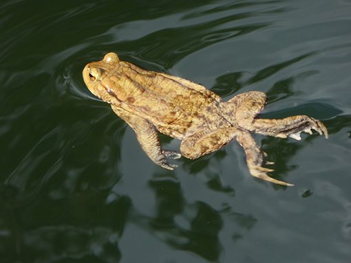 Männchen auf dem Rücken: In einem Teich beobachtete ich das Verhalten von Fröschen. Die größeren Weibchen schwammen nicht allein herum, sondern trugen die kleineren Männchen auf ihren Rücken. Laut Klaus Böttcher, Vorsitzender der BUND-Ortsgruppe Schopfheim, handelte es sich hier um Erdkröten. Die Erdkröten verlassen Anfang März ihr Winterversteck und gehen zur Fortpflanzung ins Wasser. An anderen Stellen waren zwei dicke Knäuel zu sehen. Auf einem Weibchen tummelten sich 5 Männchen. Das kommt vor, wie Friedrich Adolph von der Ornithologischen Gemeinschaft Schopfheim, betonte. Die Aufdringlichkeit der Männchen tut dem Weibchen nicht immer gut, besonders dann, wenn sie zu lange unter Wasser gedrückt wird.