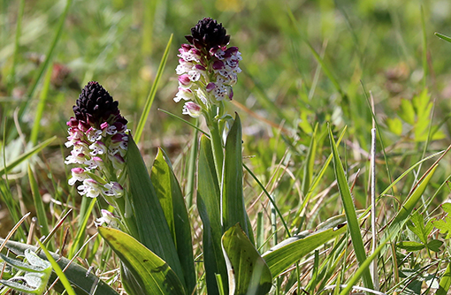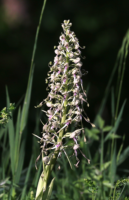 Wir entdeckten die Brand-Orchis (Brand-Knabenkraut, Angebranntes Knabenkraut), das Helmknabenkraut, die Hummel-Ragwurz, die Pyramiden-Orchis und die Bocks-Riemenzunge.