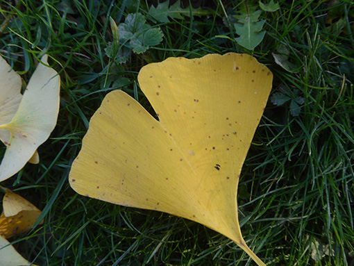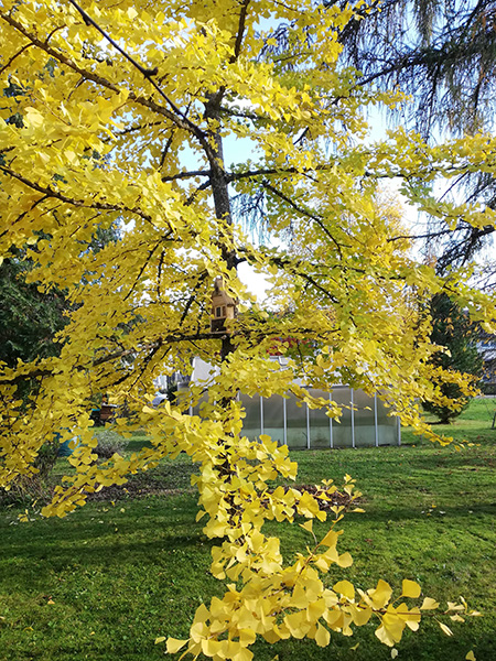 Wer durch unsere Dörfer und Städte unterwegs ist, wird in Gärten und Parkanlagen im Herbst Bäume mit leuchtend gelben Blättern sehen. Es sind Ginkgo-Bäume, die zu den lebenden Fossilien zählen (sie gab es schon vor 300 Millionen Jahren) und als Symbol für ein langes Leben und für Stärke gelten.
