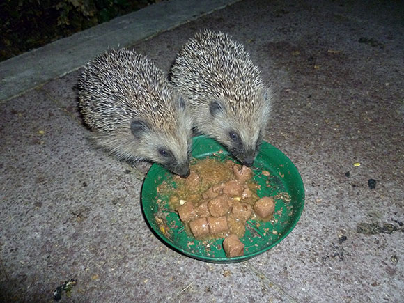 Der Schopfheimer Gerhard Hornung beobachtet schon einige Jahre Igel, die in seinen Garten kommen. Er bastelte sich eine Kiste mit einem zehn mal zehn Zentimeter großem Einschlupfloch, um Wasser und Futter vor Katzen zu schützen. In der Kiste befindet sich eine Schale mit Wasser und eine mit Igelfutter. Das Spezial-Igelfutter wurde von einer Frau von einer Gemeinde auf dem Hotzenwald empfohlen. Die Frau betrieb eine Igelstation für verletzte oder kranke Tiere. Das Trockenfutter des Handels ist ein artgerechtes vollwertiges Futter. Es enthält eine Extraportion Fleisch, Insekten und Ei. Es hilft besonders Jungtieren und kranken Tieren zu überleben. Der Bund für Umwelt und Naturschutz Deutschlands (BUND) weist darauf hin, dass auch eine Mischung aus Katzenfutter, Trockenfutter und ungewürztem Rührei gut für das Tier ist. Obst und Milch darf auf keinen Fall dem Igel angeboten werden.