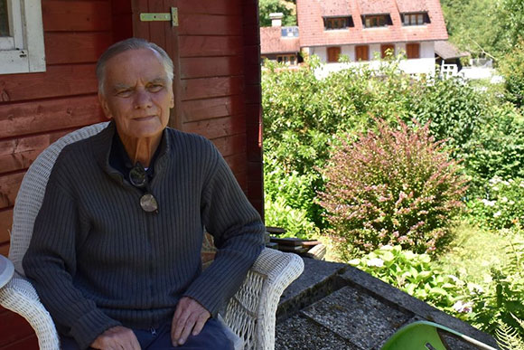 Hans Viardot und ich nahmen vor einem Gartenhäuschen Platz und beobachteten das Gewusel der Bienen auf den Blüten. An diesem Tag waren kaum Hummeln zu sehen. Der ehemalige Landarzt, der von 1973 bis 2005 eine Praxis in Tegernau führte, erklärte sich das mit der Hitze. An anderen Tagen habe er mehr als 20 Hummeln auf einer Fläche von etwa einem Quadratmeter gesehen. Man sah es dem kranken Arzt an, wie er sich über die Natur in seinem Garten freute. Besonders schön anzusehen, waren die Schmetterlinge, die hier herumflogen und Nektar saugten. Zu sehen waren Heufalter, Kohlweißlinge, Zitronenfalter, der kleine Fuchs und das Schachbrett (Damenbrett). Hans Viardot bemerkte, dass er auf seiner Wiese keinen Dünger verwendet und nur alle 2 Jahre Kalk gegen den sauren Regen ausstreut. Auch hat er nie den Boden vertikuliert. „Dadurch bleiben Bodenbakterien und Regenwürmer im Boden und auch Moos erhalten.“ Er war stolz auf seine Naturwiese und wurde immer wieder mit einer prächtigen Blumenwiese belohnt.