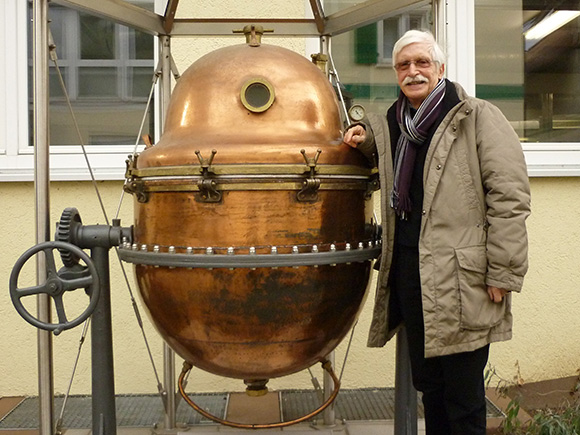 Während einer Naturheilpflanzenwoche 2013 bei Hübner bewunderte ich einen 600 Liter fassenden kupfernen Tannenblut-Destillationskessel im Freien. Insgesamt wurden von 1955 bis 2002 Millionen Liter des Tannenblut-Bronchial-Sirups mit dieser Destille hergestellt. Ausgemustert wurde das Gerät aus arzneimittelrechtlichen Gründen. Heute stehen moderne Destillationsapparate in der Produktion.