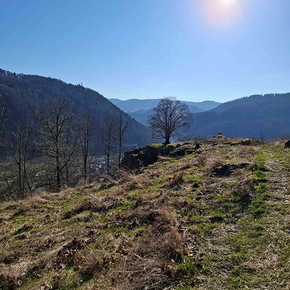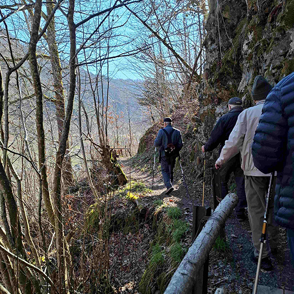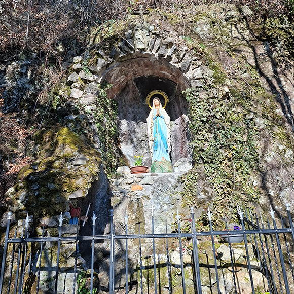Einen Tag vor Frühlingsanfang wanderten wir zu fünft an einem sonnigen Tag frohen Mutes vom Utzenfelder Parkplatz an der Wiesenbrücke auf schmalen Waldwegen bergauf zur Lourdesgrotte.